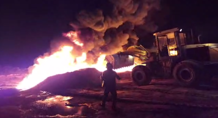 حمص…الشركة السورية للبترول إطفاء حريق بخط نفطي
